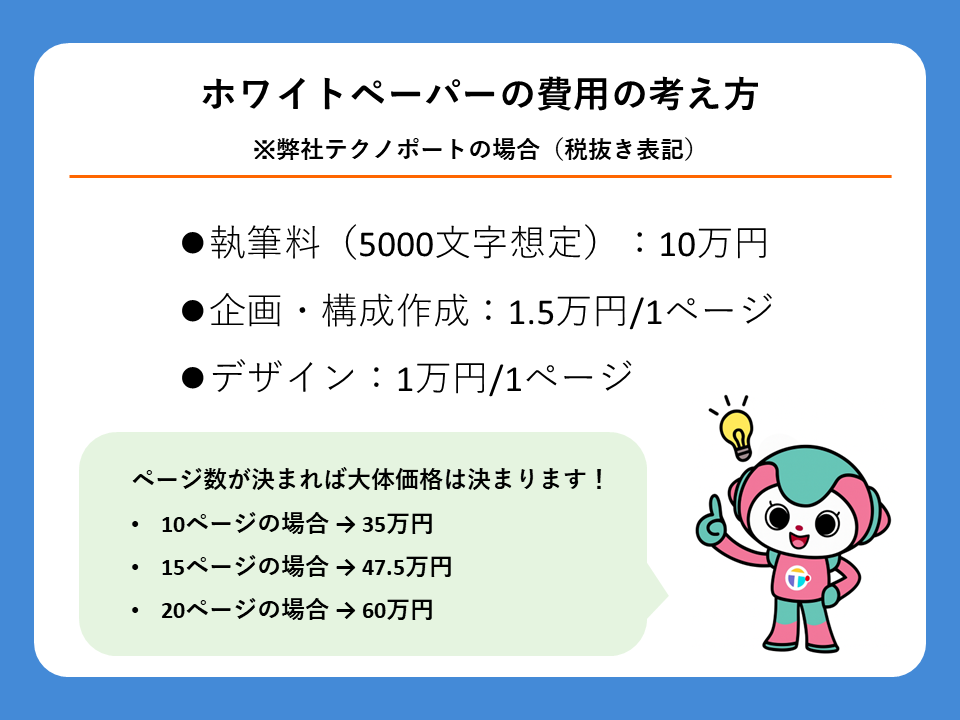 参考までに弊社のホワイトペーパーの制作費を掲載します。