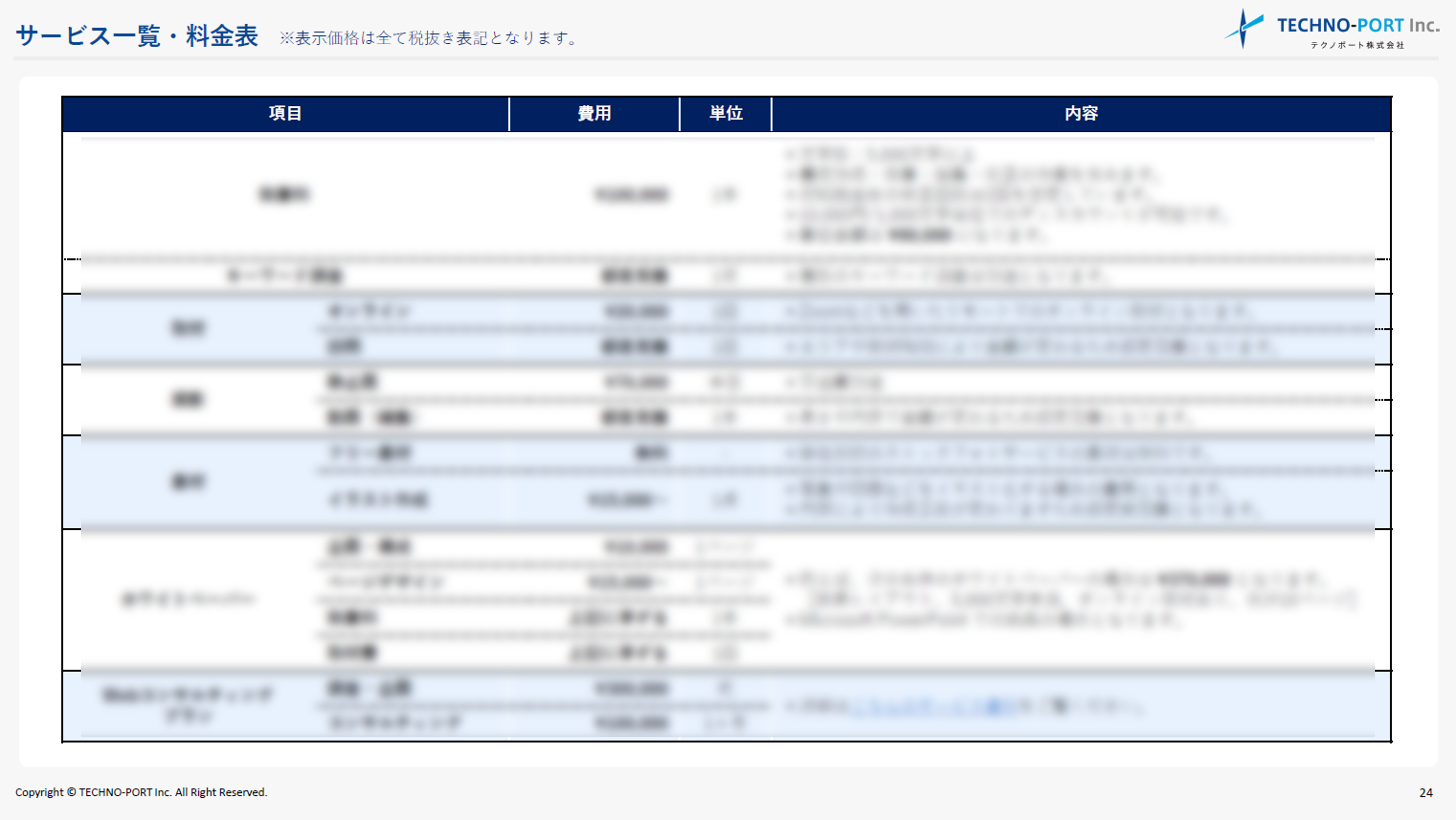 費用の内訳や詳細な価格表は、以下からダウンロードいただけます。